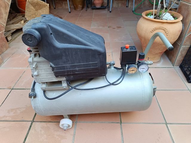 Detalles del productoCompresor de aire en buen estado, lleva tiempo parado, su color era rojo pero se pintó para proteger el calderín, creo que es de 25.