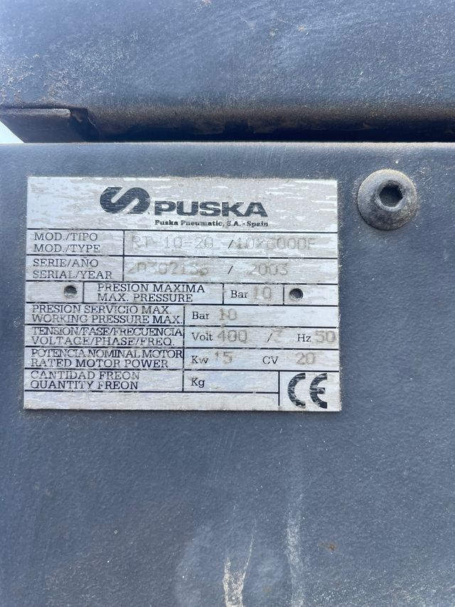 Detalles del productoCompresor de tornillo marca Puska, modelo RT-10-20.