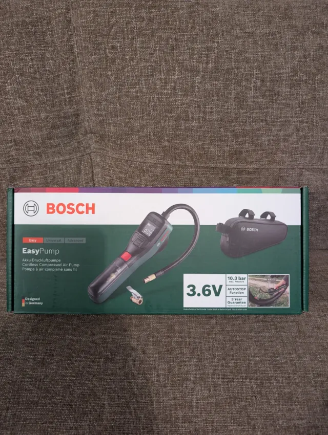 Detalles del productoCompresor de aire compacto y portátil de la marca Bosch, modelo EasyPump. Recarga USB-C. Caja Sellada.