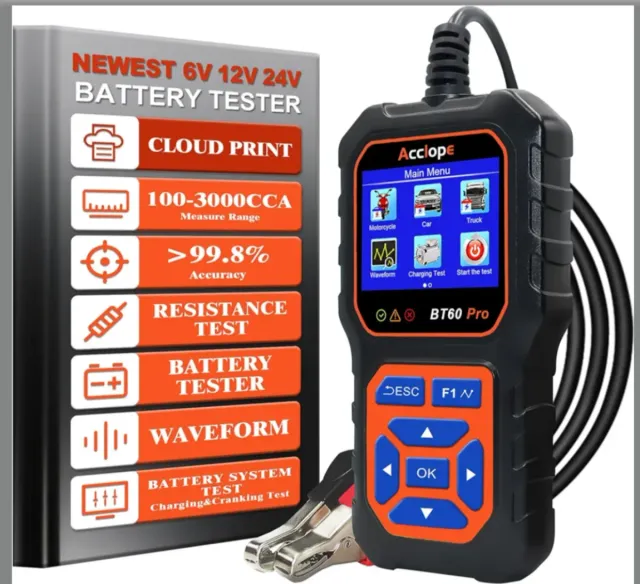Detalles del productoComprobador de baterías para vehículos de 6V, 12V y 24V. Permite realizar pruebas de resistencia, waveform y sistema de carga/arranque.
