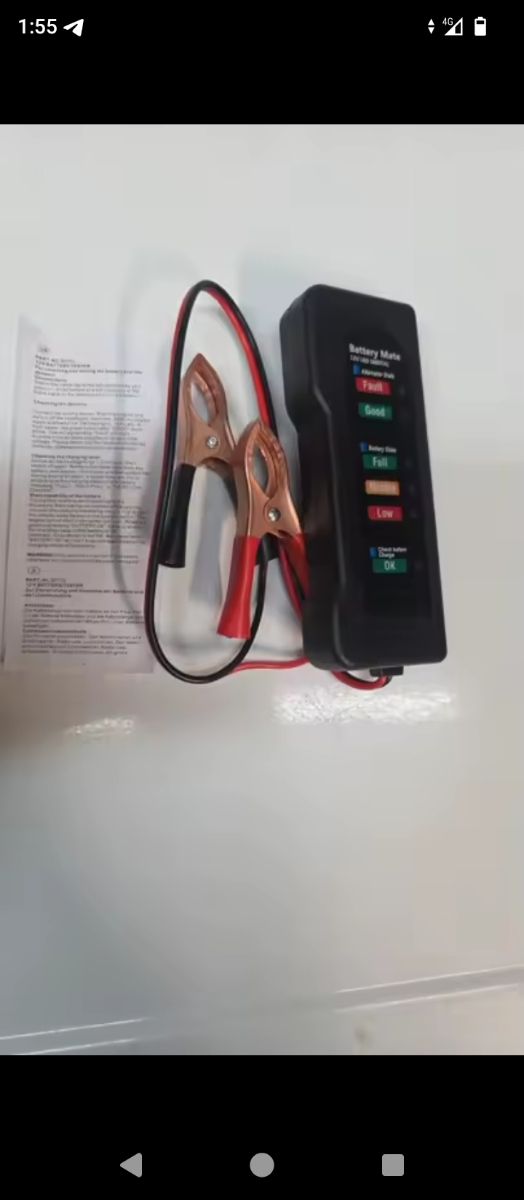 Detalles del productoComprobador de batería y alternador para coche de 12V. Permite verificar el estado de la batería y el sistema de carga.