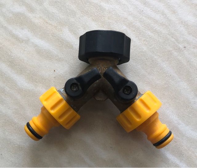 Detalles del productoConector para mangueras de jardín que permite dividir el flujo de agua en dos salidas independientes. Ideal para conectar dos mangueras a una sola toma de agua.