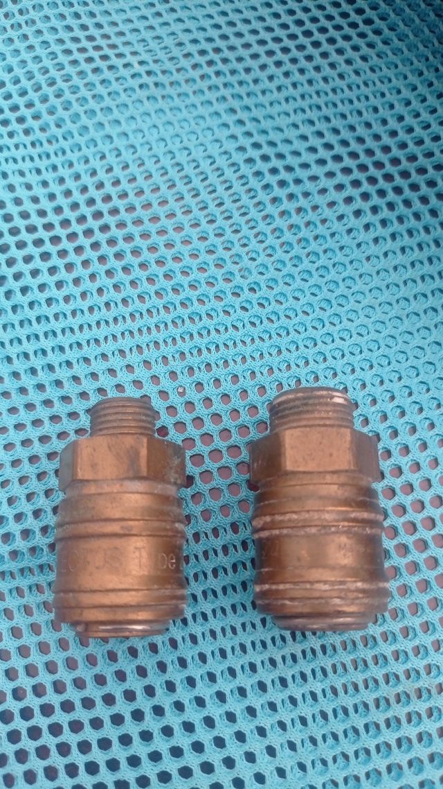 Par de conectores de latón usados. Se aprecian en buen estado. - Dos piezas en total. - Material: Latón. - Acabado antiguo.