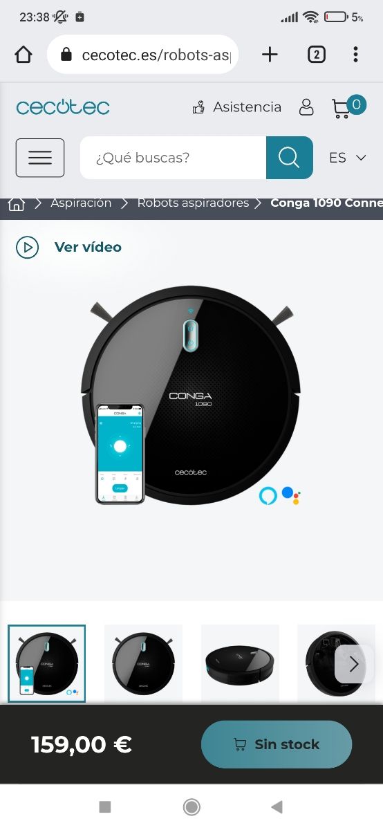 Detalles del productoRobot aspirador y fregasuelos Conga 1090 Connected Force, App Control, Aspira, Barre, friega y Pasa la mopa, 1400 Pa, Cepillo Especial para Mascotas, Fregado Inteligente, Alexa & Google Assist