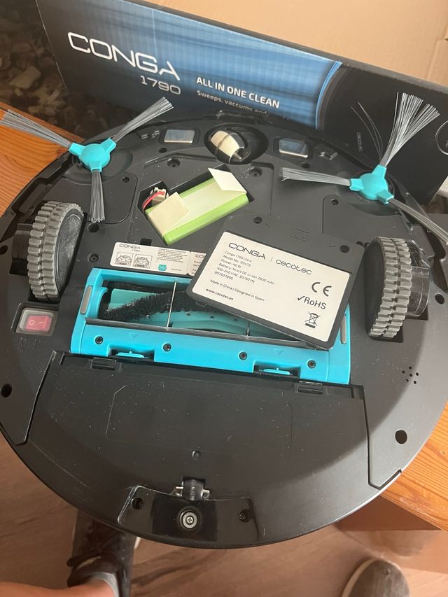 Aspiradora robot Conga 1790 en buen estado. - Aspira, barre y friega. - Incluye dos cepillos laterales. - Batería incluida.