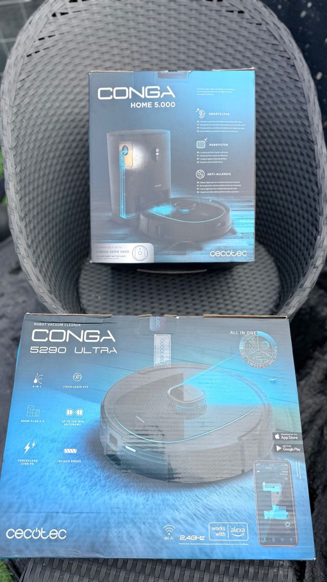Detalles del productoRobot aspirador Conga 5290 Ultra en perfecto estado, con su base de carga.