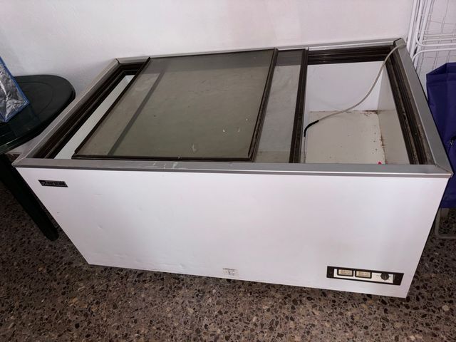 Detalles del productoCongelador en perfecto estado. Lo hemos limpiado y está mejor que en las fotos. Congela todo tipo de productos. Puertas correderas de cristal. Dispone de 150 cm de largo y 80 de alto. Medidas del producto