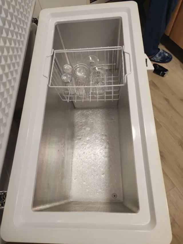 Detalles del productoCongelador arcón de color blanco, ideal para almacenar alimentos.