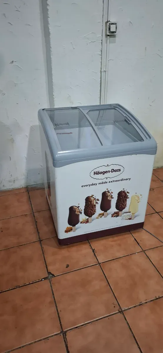 Detalles del productoCongelador expositor de la marca Haagen-Dazs con diseño frontal.