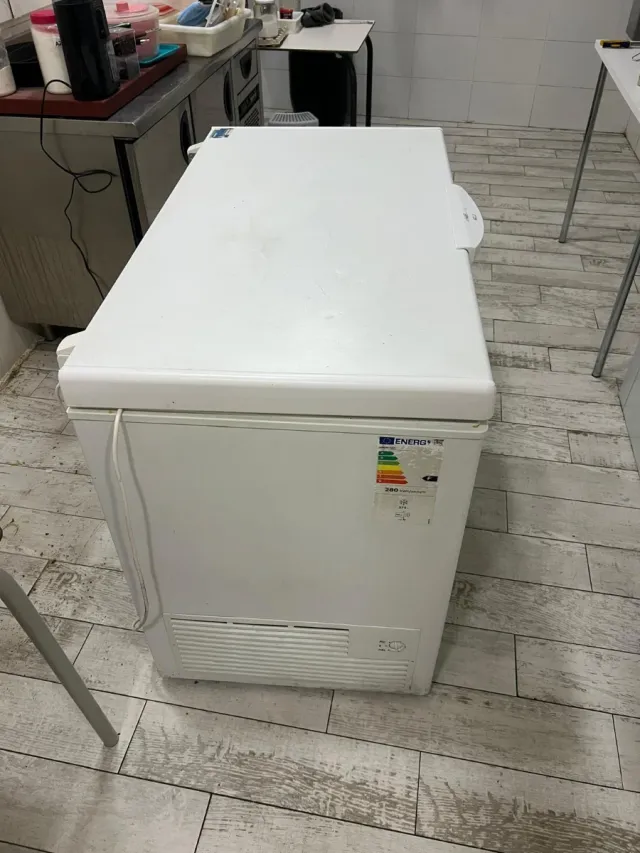 Detalles del productoCongelador horizontal de color blanco.