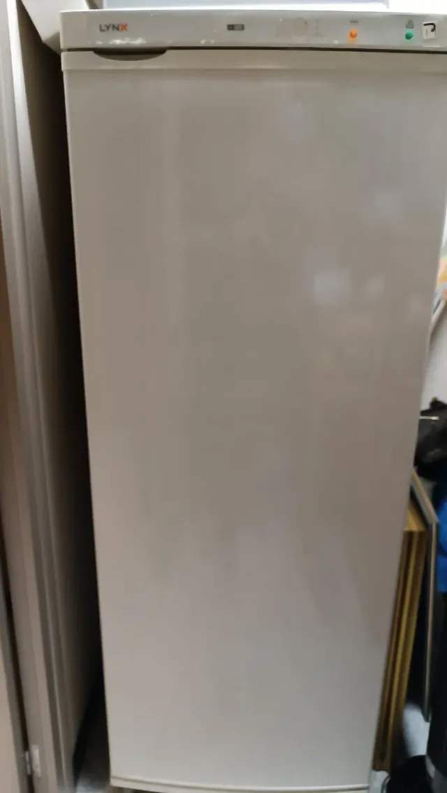 Detalles del productoCongelador vertical de la marca Lynx. Su diseño es blanco y elegante, con el logo de la marca visible en la parte superior.
