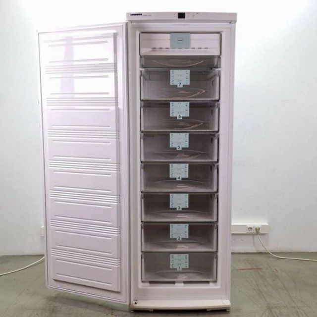 Congelador vertical de la marca Liebherr con ocho cajones. - Diseño vertical. - Ocho cajones transparentes para fácil visualización. - Color blanco.