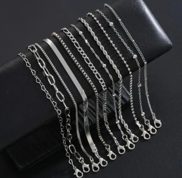 Conjunto 10 Pulseras Tobilleras Plata