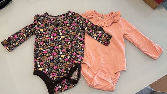 Detalles del productoConjunto de dos bodys de manga larga para bebé, talla 9-12 meses.
