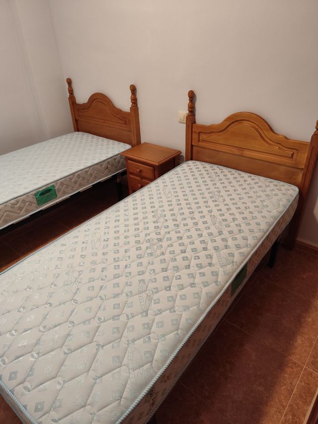 Detalles del productoSe venden dos camas individuales de madera maciza con cabeceros y una mesilla de noche a juego. Las camas están en buen estado y son perfectas para una habitación infantil o juvenil.