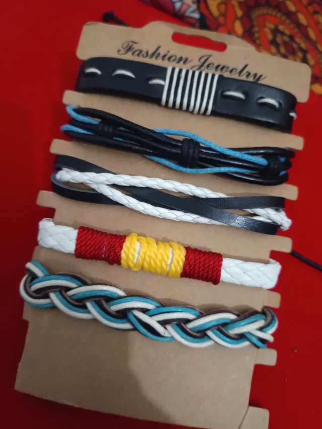 Conjunto 5 Pulseras Cuero y Tejido