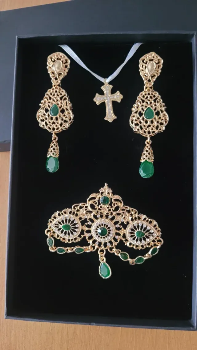 Conjunto Aderezo Dorado y Verde