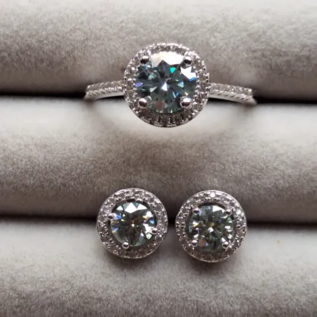 Conjunto Anillo y Pendientes Moissanitas Plata-Oro