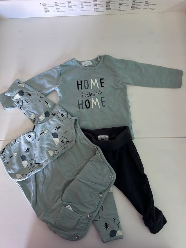 Detalles del productoConjunto de ropa para bebé de 3 piezas, talla 9 meses. Ideal para mantener a tu pequeño cómodo y abrigado.