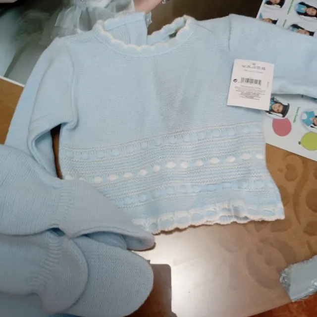 Detalles del productoConjunto de punto para bebé en color azul claro.