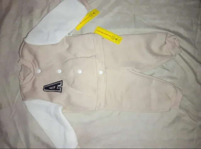 Detalles del productoConjunto de bebé estilo béisbol con la letra 'A', esta nuevo con su etiqueta no sé ha usado.