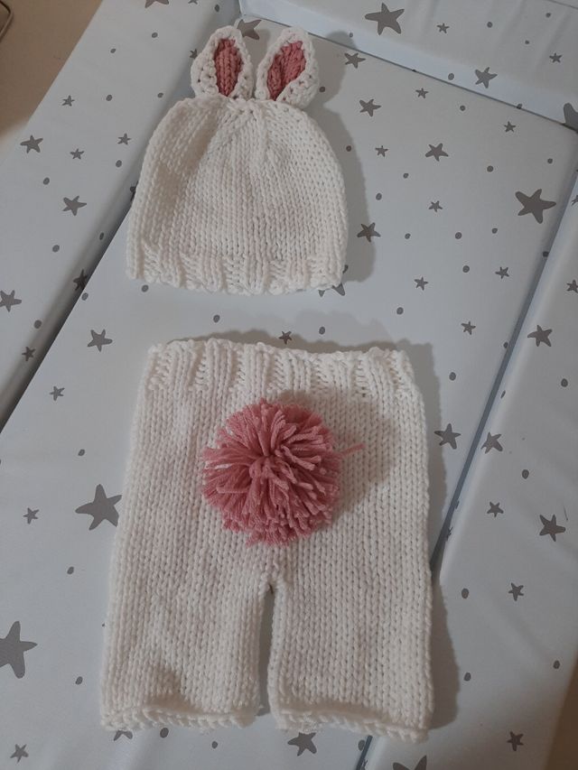 suave conjunto de bebé para fotos de recién nacido. gorro conejo y pantalón con colita pompón. Más cosas chulas en mi perfil!