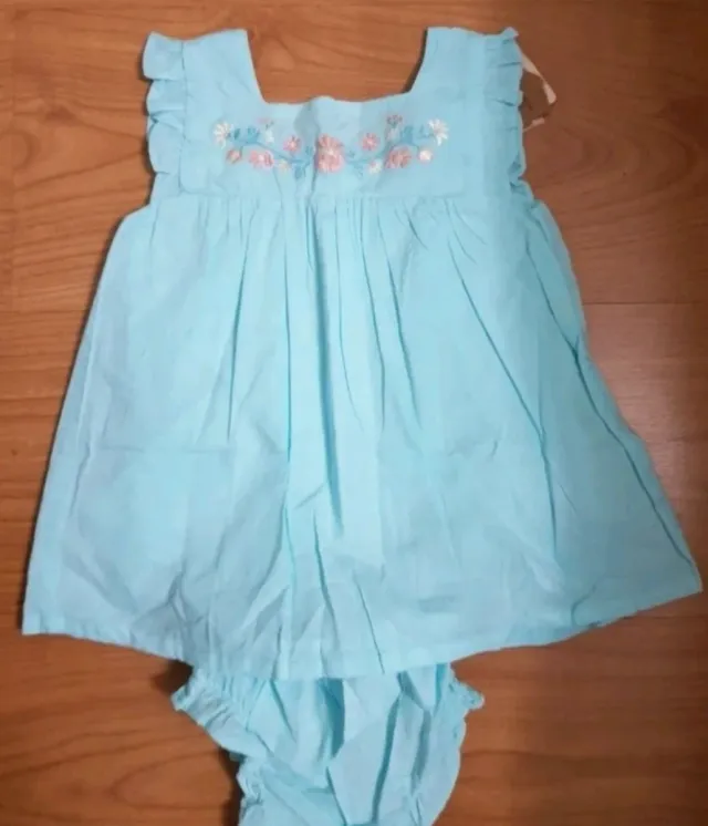 Detalles del productoConjunto de dos piezas para bebé niña, talla 9 meses. Incluye vestido y braguita.