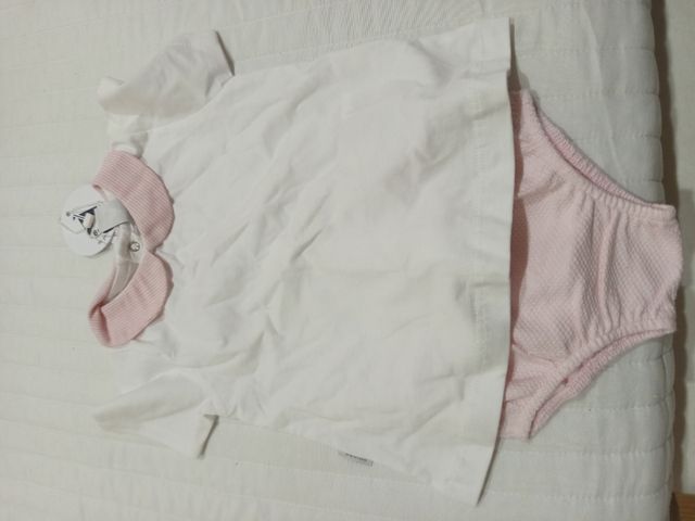 Detalles del productoPrecioso conjunto para bebé niña, compuesto por una blusa blanca con cuello rosa y una braguita a juego de color rosa. La blusa es de algodón suave y la braguita tiene una textura agradable. - Blusa blanca con cuello rosa. - Braguita rosa. - Ideal para ocasiones especiales o uso diario.