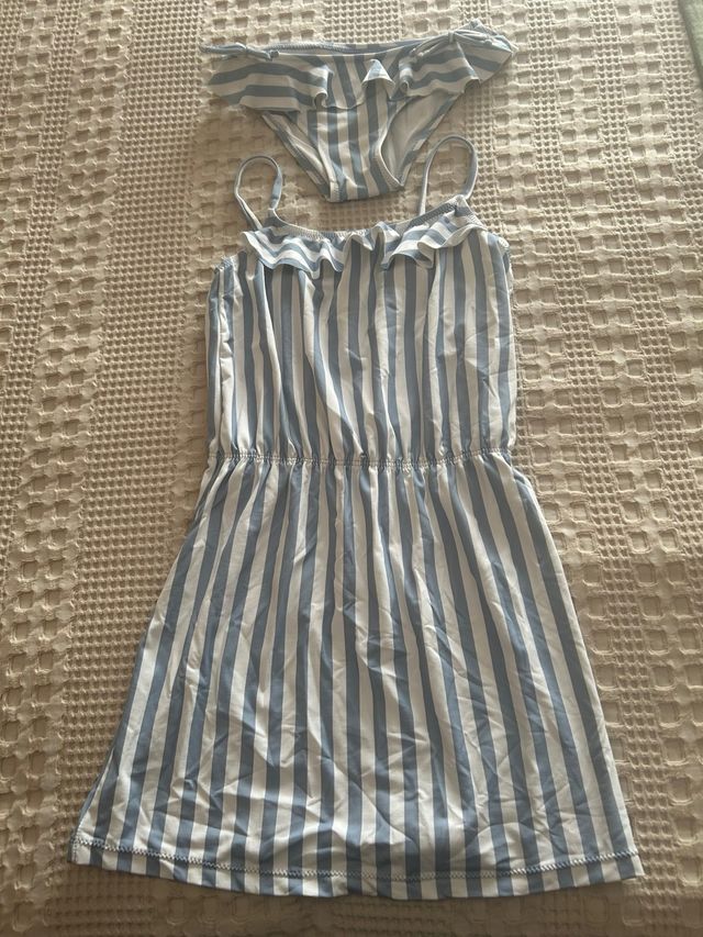Conjunto Bikini y Vestido Playa Rayas. 7-8 años