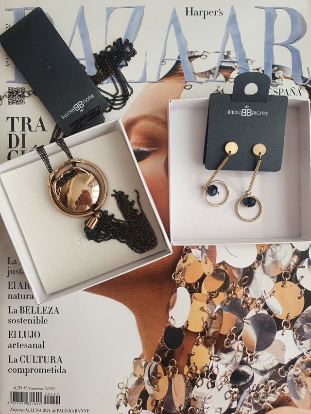 Colgante es reversible, se puede poner todo dorado o en negro con piedras de strass.