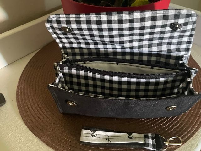Conjunto Bolso Cartera y Llavero Cuadros