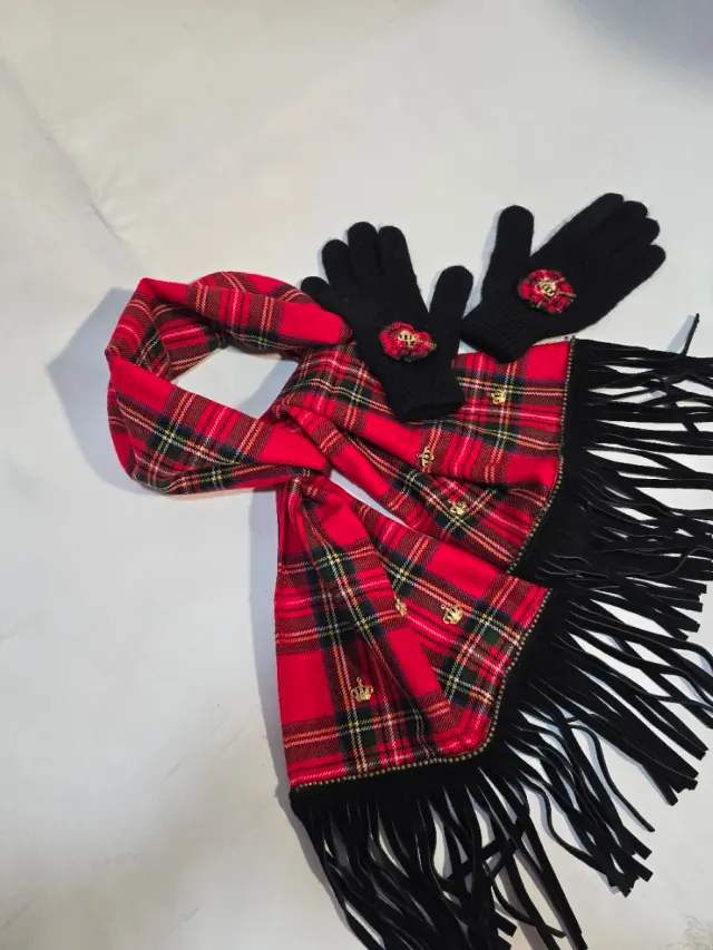 Conjunto bufanda y guantes cuadros