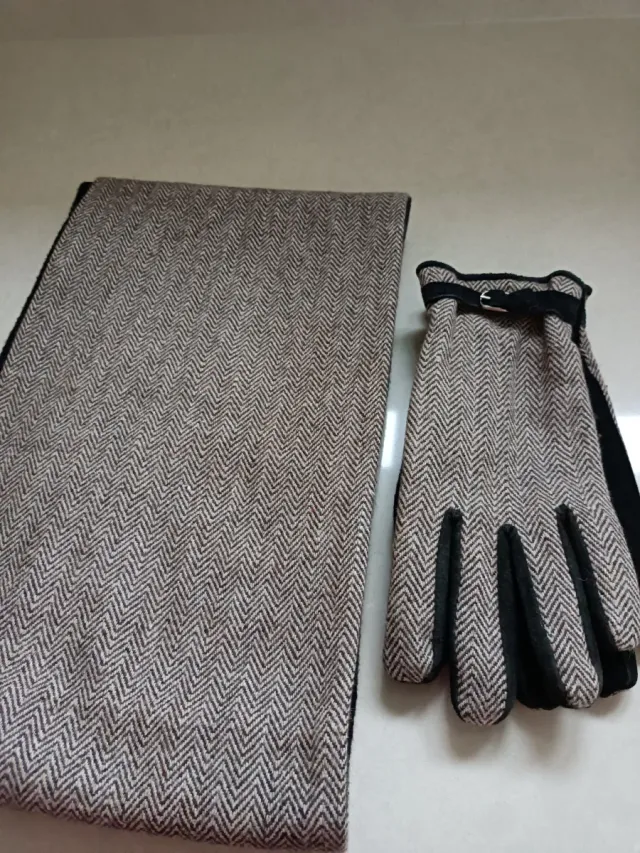 Conjunto bufanda y guantes espiguilla mujer