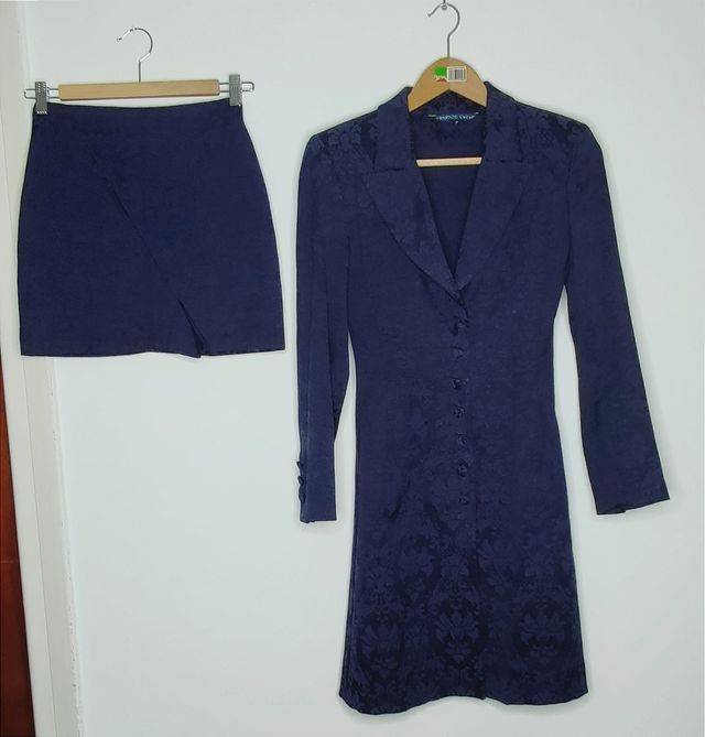 Conjunto Chaqué + Minifalda azul entallado en reli