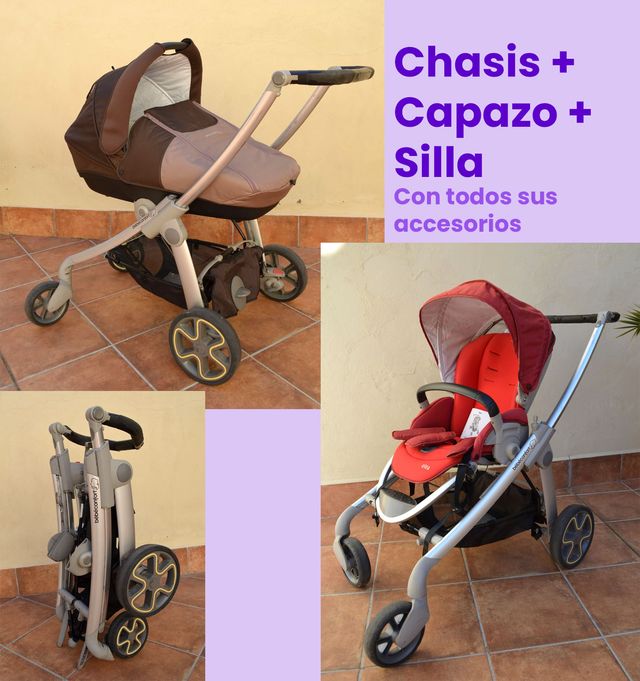 Conjunto Chasis + Capazo + Silla Bebe Confort.