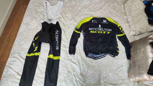 Detalles del productoConjunto de ropa de ciclismo de la marca Mitchelton Scott.