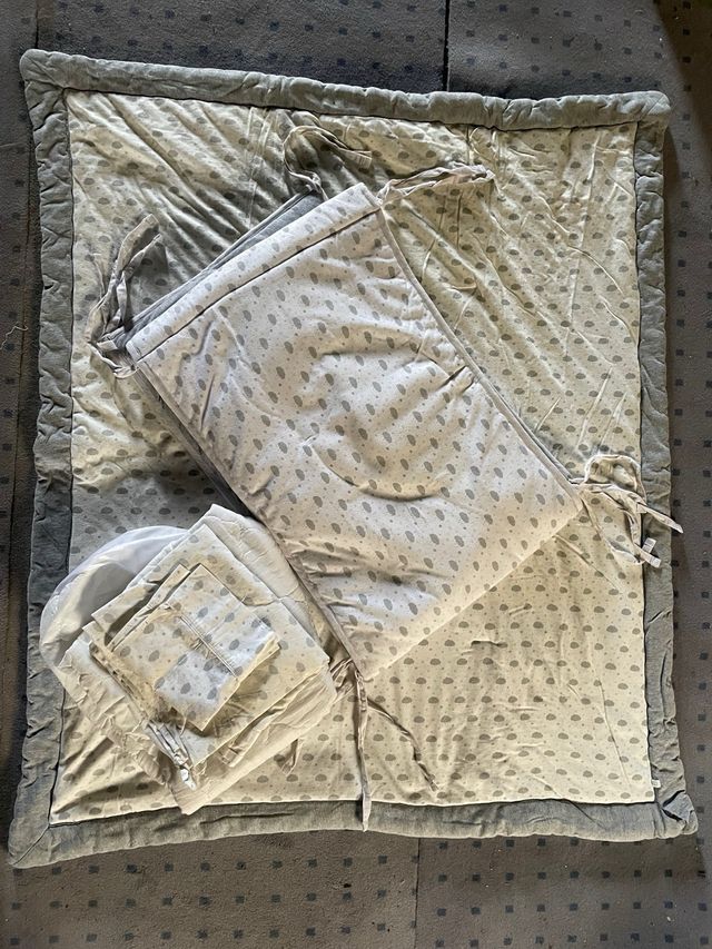 Detalles del productoConjunto de ropa de cuna con colcha y protector.