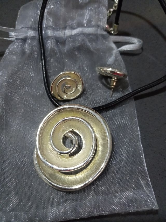 Conjunto Colgante y pendiente, de forma de caracol, plateado. Nuevo.