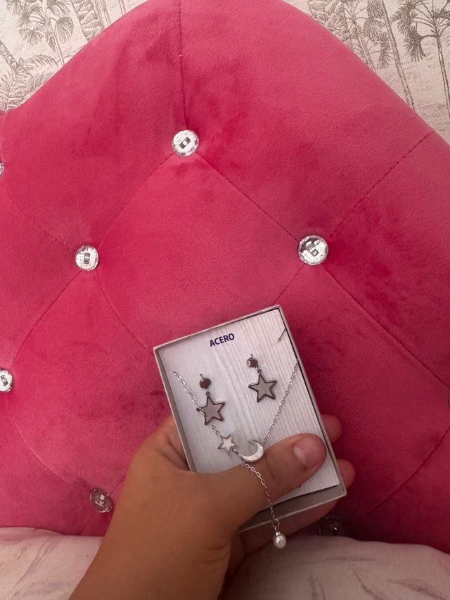 Conjunto collar y pendientes acero estrellas y lun