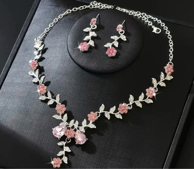 Conjunto Collar y Pendientes Flores Rosas y Platea