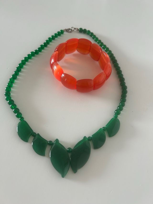 Conjunto collar y pulsera jade y cornalina