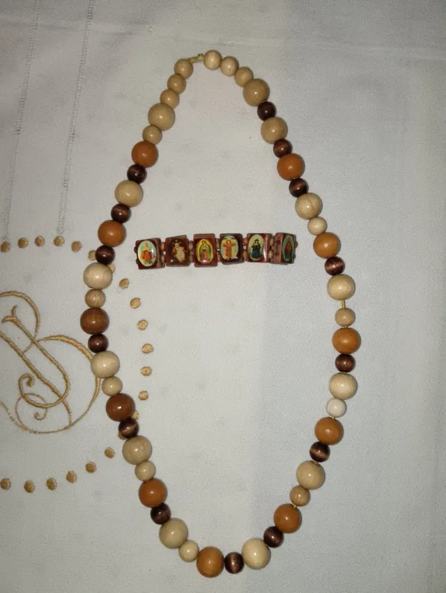 Conjunto collar y pulsera madera vintage