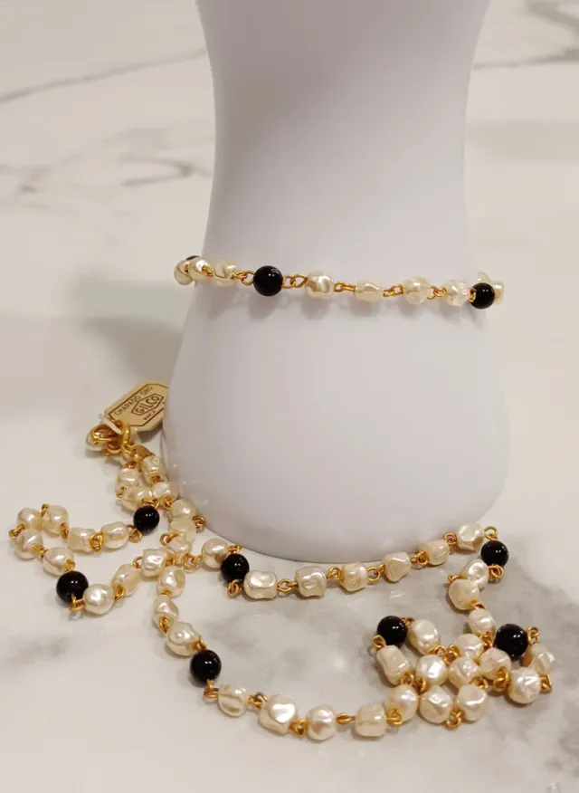 Conjunto Collar y Pulsera Perlas y piedras Negras.