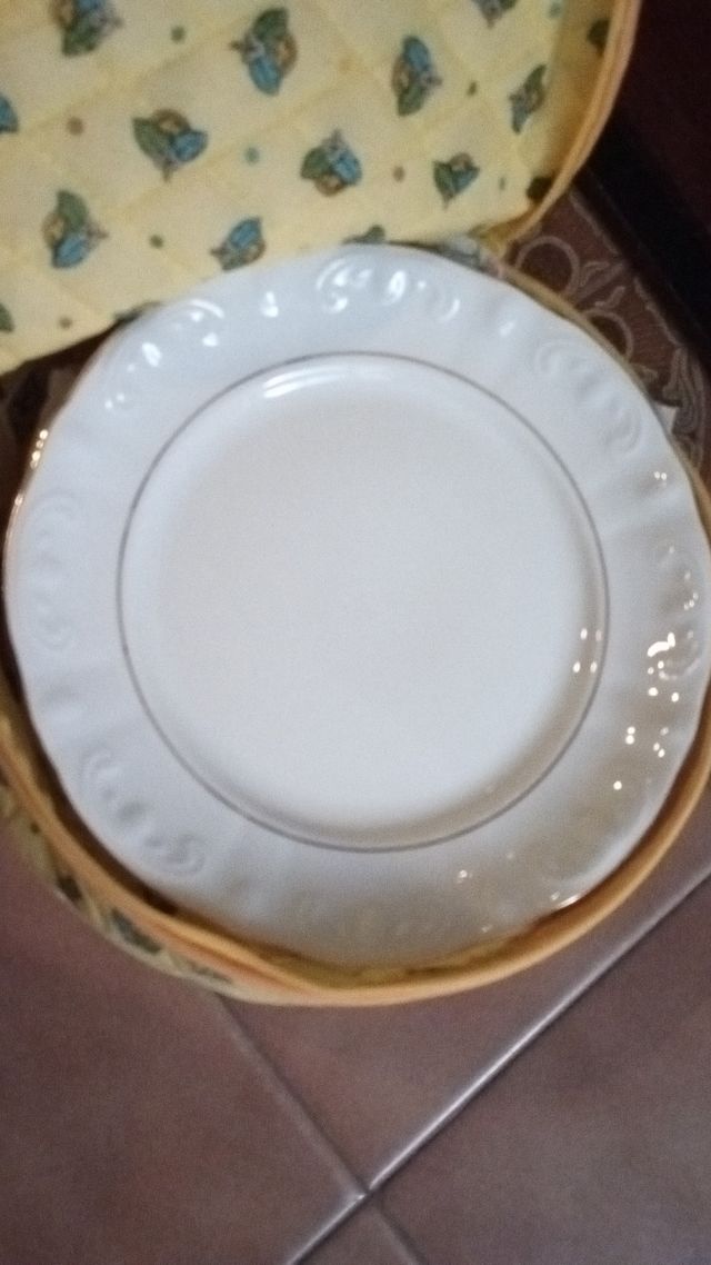 Conjunto completo de vajilla y juego de café de porcelana blanca con ribete de oro, en los otros anuncios veréis la descripción de cada uno de ellos