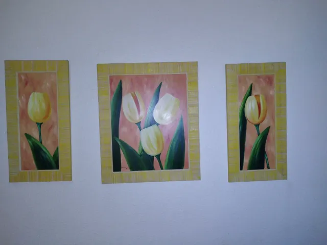 Conjunto de 3 cuadros de tulipanes amarillos