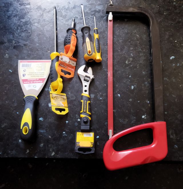 Detalles del productoJuego de 7 herramientas de bricolaje, todas nuevas. Ideales para pequeñas reparaciones en casa.