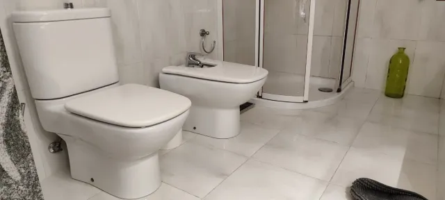 Conjunto de baño: inodoro, bidé,pica, plato grifos
