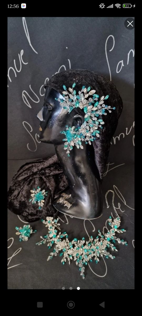 Conjunto de bisutería gitana plateado y turquesa