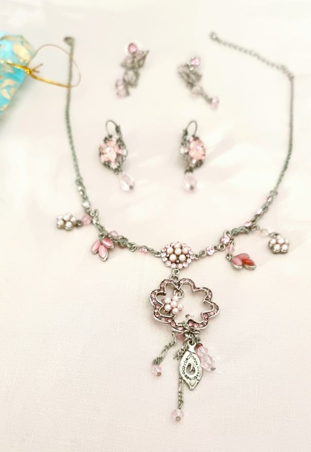 Conjunto de collar y pendientes en rosa