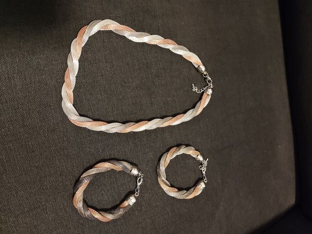 Conjunto de gargantilla y pulseras trenzadas.